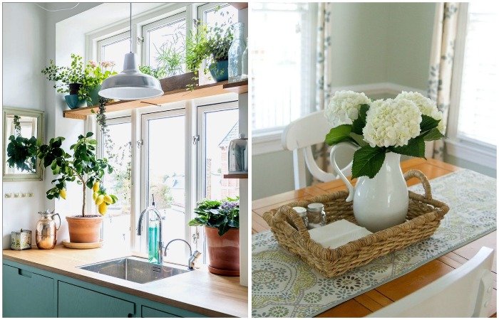 Даже самая маленькая и темная кухня заиграет новыми красками, если вы добавите в нее немного жизни. Мы говорим о живых цветах. Сейчас за небольшие букетики на рынке просят символичную цену, поэтому можно ставить в вазу новые цветы хоть каждую неделю. Более «долговечным» вариантом станут комнатные растения, но только в том случае, если вы будете за ними ухаживать.