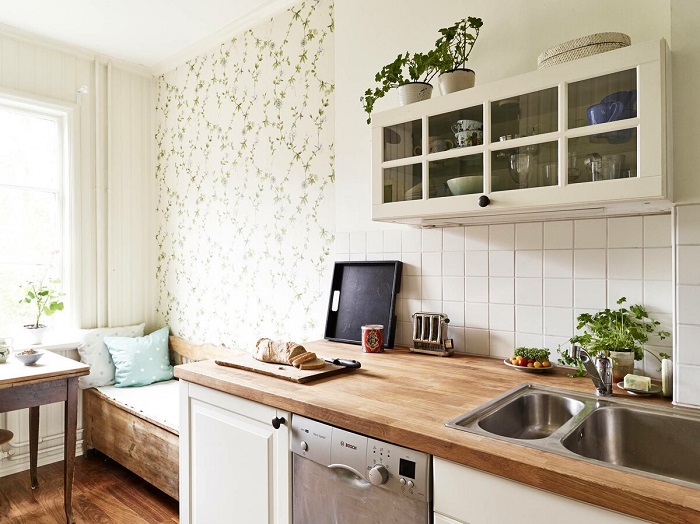 Обоями в цветочек можно выделить обеденную зону. / Фото: pro-dachnikov.com