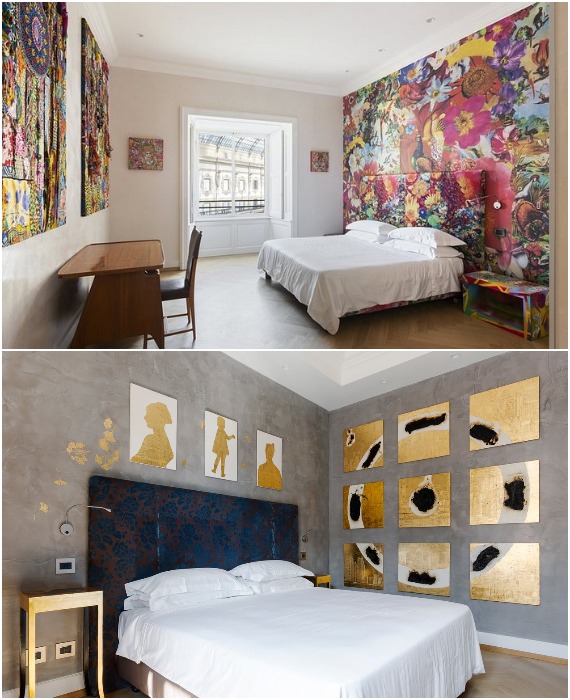 В каждом номере и даже в ванных комнатах роскошного арт-отеля Galleria Vik Milano постояльцев окружают произведения искусства (Италия).