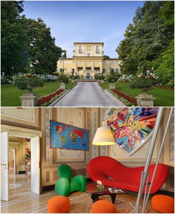 Гостей Byblos Art Hotel ждет отдых практически в настоящей художественной галереи, где искусство является главным событием (Верона, Италия). | Фото: guide.michelin.com. Арт-отель Byblos расположен среди виноградников Вальполичеллы, на территории великолепной виллы, построенной еще в XVII веке в стиле барокко (недалеко от Вероны). Большой вестибюль является выставочной площадкой для необыкновенной коллекции современного искусства, где представлены работы таких художников, как Дэмиен Херст, Марина Абрамович, Ванесса Бикрофт, Марк Куинн, Аниш Капур, Такаши Мураками, Рон Арад и т. д. Каждый из 59 номеров Byblos Art Hotel мастерски украшен оригинальными произведениями искусства, а за каждым углом, на каждом пролете лестницы и в самом потаенном уголке гостей ждет встреча с удивительной картиной или увлекательной инсталляцией. И это, не говоря об эксклюзивной мебели, неожиданных формах сантехнического оборудования и самой атмосфере, в которую погружаются любители искусства и неординарного отдыха.