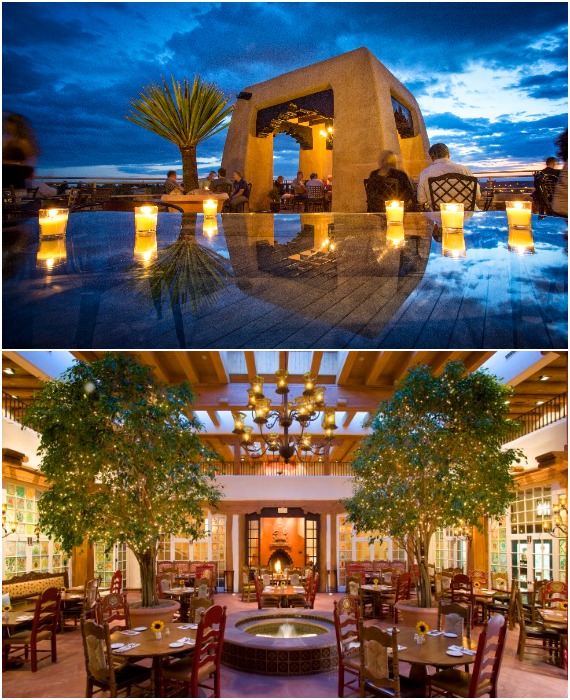 Отель La Fonda on the Plaza — захватывающая дух достопримечательность на исторической улице в колоритном американском городе Санта-Фе. Удивительная обстановка притягивает как творческую элиту города, так и его гостей, ведь в каждом уголке отеля можно увидеть потрясающие картины, редкие произведения искусства местных и американских художников, при этом поближе познакомиться с тонкостями испанской архитектуры в стиле пуэбло. Простые и не совсем белые стены, имитирующими старинные технологии нанесения глины, запоминающийся декор, аксессуары и ковры ручной работы, яркая обивка, витражи с национальным историями и орнаментами, старинные деревянные изголовьям, сделанные на заказ шкафы и причудливые люстры из жести, стекла и меди, деревенский камин, покрытый декоративной глиняной штукатуркой – все это позволило создать дизайн, в котором все элементы сплетены воедино, создавая особый вид прикладного искусства.