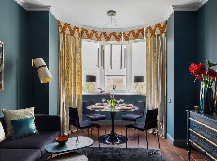 Если эркер полукруглый, можно попробовать обустроить здесь обеденную группу. Важно лишь подобрать стол, который будет сочетаться по форме с выступом, иначе вы не сможете удобно разместить мебель. Такое интерьерное решение позволит убить сразу двух зайцев: логично разделить пространство на зоны, а также создать уютный уголок для трапез и общения. Отличная идея – организовать дополнительное место для сидения на подоконнике (важно, чтобы его высота была комфортной). Положите на него мягкий матрас или подушки, чтобы гостям и членам семьи было удобно. Кстати, под сиденьем можно будет сделать дополнительное место для хранения – как показывает практика, оно никогда не бывает лишним.