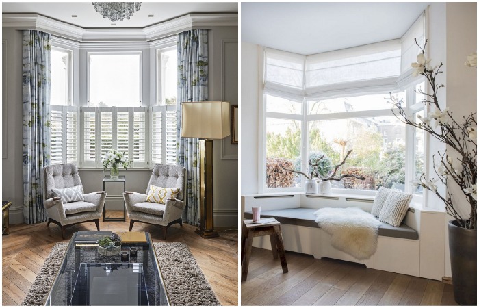Для эркерного окна важно правильно подобрать шторы, чтобы оно гармонировало с дизайном всей комнаты. Так вы сможете его сделать главным акцентом в интерьере. В этом вопросе важно ориентироваться на предназначение комнаты, а также ваши собственные пожелания. Если окно выходит на солнечную сторону, и вы хотите спрятаться от ярких лучей, используйте деревянные жалюзи, рулонные, римские или австрийские шторы. Мечтаете наслаждаться красивым видом из окна? Тогда идеальным вариантом станет легкий, полупрозрачный тюль. Что касается плотных гардин, то их следует использовать лишь в том случае, если эркер находится в спальне.