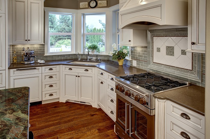 Если вы думаете, как обыграть эркер, еще на этапе планирования интерьера, вот вам пища для размышлений. Как насчет того, чтобы сделать его частью кухни? Например, разместить здесь рабочую поверхность с раковиной и столешницей. Получится своеобразный вариант релакс-зоны. Любая хозяйка будет получать гораздо больше удовольствия от готовки и мытья посуды, смотря в окно, из которого открывается красивый вид, а не в стену.