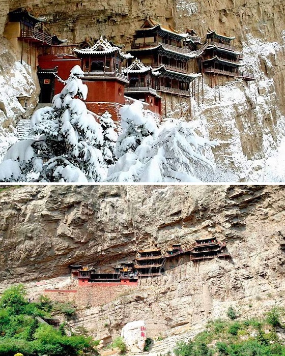 Современный Храм – это внушительный архитектурный комплекс, «парящий» над живописной долиной Шаньси (Храм горы Хенг, Китай). Буддийский храм на стене отвесной скалы в одной из самых живописных китайских провинций, в Шаньси, где сохранилось множество древнейших памятников архитектуры, появился 1,5 тысяч лет назад. Отвесная стена с природными пещерами, изначально привлекла буддийского монаха-отшельника, по стопам которого пошли и другие, что вызвало необходимость строительства монастыря, в прямом смысле слова нависающего над долиной на уровне 75 метров. За многовековую историю своего существования буддийская святыня настолько разрослась, что теперь туристам и паломникам можно потратить целый день в изучении артефактов, находящихся в 40 залах и галереях, соединенных между собой висячими лестницами и вырубленными в скалах туннелями.