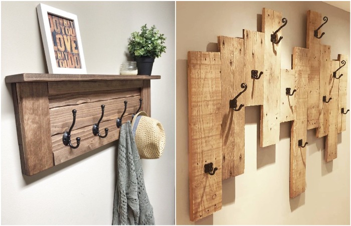 Пожалуй, одна из самых простых в изготовлении вещиц – это вешалка для одежды. Здесь нет никаких сложных схем, дорогостоящих и труднодоступных материалов, требований технических нормативов. Полный полет фантазии! Главное, чтобы конструкция была надежной, так как крюки и основание испытывают постоянные нагрузки. По этой причине важно задавать прочность с запасом.