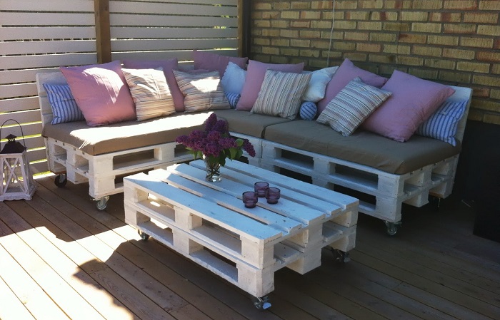Из поддонов можно сделать и диван, и столик. / Фото: mykaleidoscope.ru