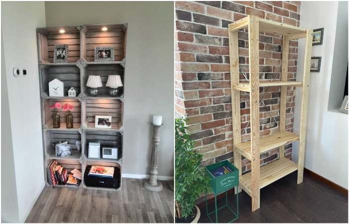 Этот предмет мебели получится соорудить даже при полном отсутствии столярного опыта. Достаточно будет просто сколотить конструкцию подходящего размера из досок и гвоздей. Если вы планируете использовать стеллаж, например, в сарае, то подойдет даже древесина третьего сорта, которая не отличается высоким качеством. Кстати, для изготовления можно использовать не только доски, но даже деревянные ящики, которые есть в любом продуктовом магазине. Обычно они валяются без дела, а вы подарите им новую жизнь.