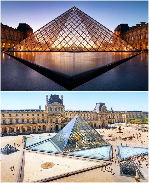 Та самая Пирамида Лувра, принесшая мировую славу ее создателю и вызвавшая невиданный переполох (Париж, Франция).