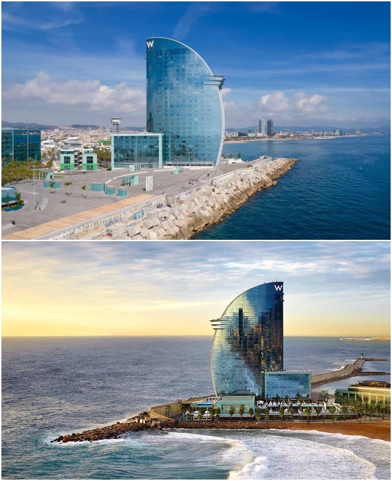 Отель W в Барселоне – прекрасный пример достижений современных технологий в стеклянной архитектуре (автор Рикардо Бофилл).