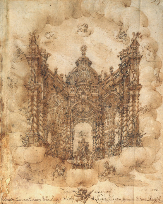 Так Франческо Галли Бибиен представлял Дворец Солнца, навеянный Откровениями Иоанна Богослова (рисунок 1717 год). | Фото: arzamas.academy.