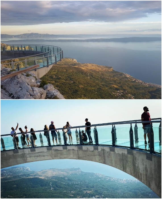 Прозрачные полы и ограждение Skywalk Biokovo на высоте свыше тысячи метров гарантируют адреналиновую встряску (Биоково, Хорватия.