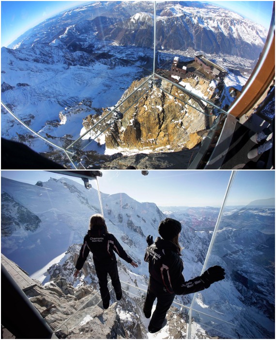 8. Смотровая кабина «Шаг в пустоту» на вершине ледника Эгюий-дю-Миди (Франция)
