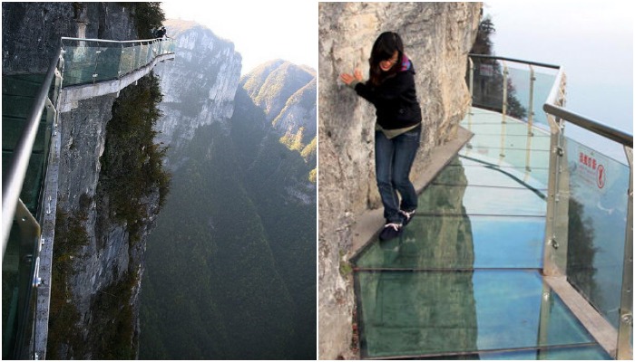 Китай настолько привык удивлять весь мир, что фантазиям архитекторов и инженеров нет границ, но в туристическом районе горной гряды Тяньмэнь они превзошли самих себя. На высоте 1,5 тыс. метров на самой вершине скалы появилась экзотическая смотровая площадка, представляющая собой стеклянную тропу (отсюда и название – «Стеклянная небесная тропа»), которая напоминает узкий балкон в прямом смысле слова зависший над глубокой пропастью. Туристический аттракцион настолько экстремален, даже самые отчаянные предпочитают держаться ближе к скале, ну а остальные – стараются передвигаться по мосту «по стеночке», хотя случается, что и на коленках.