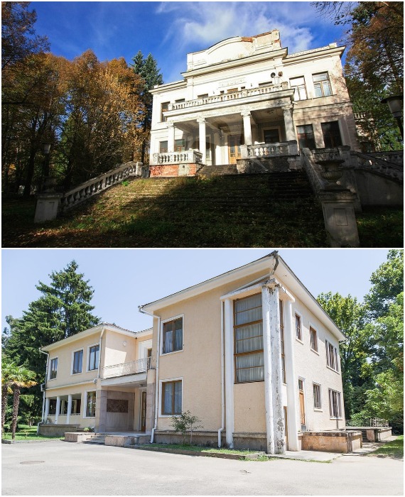 Авторы Novate.ru хотели бы отметить, что наибольший интерес вызывают все-таки дачи Сталина, разбросанные в Москве, Подмосковье и на юге необъятной страны (всего около 20). Практически все они были построены (роскошные особняки он занимал редко) согласно его аскетичному вкусу и видению комфорта. Многие дачи он посещал регулярно, в других – жил подолгу, ну а некоторые – годами пустовали, при этом обслуживающий штат томился в ожидании вождя, но совсем не роптал. Самой любимой и обитаемой являлась «Ближняя дача» на Поклонной горе, построенная архитектором Мироном Мержановым (1933-1934 гг.), где Иосиф Виссарионович жил и работал на постоянной основе, ведь рабочий кабинет был для него и местом жительства. Кстати сказать, двухэтажный дом, оснащенный бункером-убежищем, так и не стал домом-музеем вождя и по сей день является режимным объектом. Большинство же других дач были попросту заброшены. Хотя южным повезло больше, некоторая их часть вошла в состав санаториев, ведь располагались они в самых живописных природных парках, которые со временем освоили курортно-лечебные заведения.