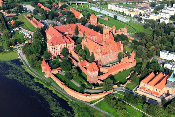 Средневековый город-крепость Мальброк состоит из трех уровней замковых комплексов (Польша).