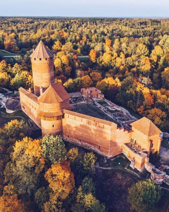 Турайдский замок – средневековый фортификационный объект на латвийской земле, построенный в стиле кирпичной готики в 1214 году при Альберте – архиепископе Риги, предводителе ливонских меченосцев, которые объединились с Тевтонским орденом. Как водится, для его строительства был разрушен деревянный замок ливонского вождя Каупо Турайдского, ведь он находился в самом неприступном и стратегически важном месте. Строительство и развитие тевтонских фортификационных сооружений продолжалось длительное время и значительно пережило сам Орден, ведь замок нес миротворческую миссию и являлся резиденцией католических епископов.