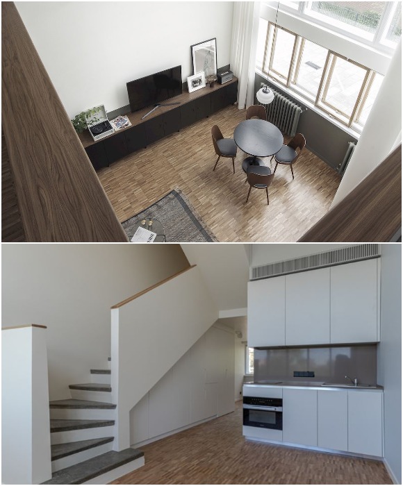Макет двухуровневой квартиры типа F площадью 35-36 кв. метров в Доме Наркомфина разработки М. Гинзбурга. | Фото: arzamas.academy.