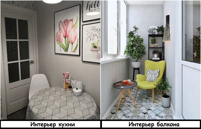 Кухня и балкон оформлены в едином стиле