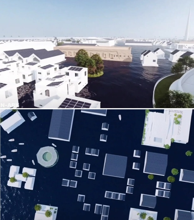Основные характеристики инновационного плавучего города, который сможет противостоять природным катаклизмам, связанным с наводнениями и цунами (концепт Dogen City). | Фото: architecturaldigest.com.