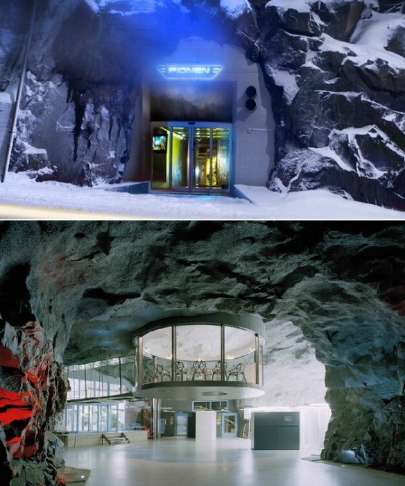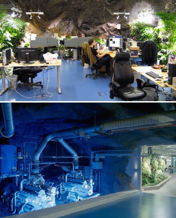 Бывший бункер под центром Стокгольма стал интересным дизайнерским проектом под названием Pionen White Mountain (Швеция). Это, пожалуй, самый неожиданный и впечатляющий офис, который могли себе придумать даже пресытившиеся различными диковинками современники. Речь идет об офисе шведского интернет-провайдера White Mountain, находящегося под центром Стокгольма, точнее сказать в одном из бомбоубежищ, заброшенных в 1970-х годах. Находясь на глубине 30 метров под гранитными скалами Вита Берг, высокотехнологичный офис может похвастаться самым удивительным рабочим пространством в мире, главным отелочным материалом которого стали натуральные камни, ведь по сути, это подземная пещера с особенным микроклиматом и формами сводчатых потолков, фактурных проемов, причудливых коридоров и галерей, соединяющих разные пространства, начиная от впечатляющего вестибюля, открытого зала для мозговых штурмов/других крупномасштабных дискуссий и заканчивая местами, подходящими для закрытой рабочей среды.