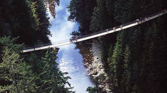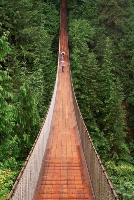 Взлетая на 70 метров над ущельем реки Капилано и исчезая в густых вечнозеленых лесах, одноименный подвесной мост (Capilano Suspension Bridge) длиной 140,2 метра стал для посетителей пропускным пунктом в заколдованный лес, хотя центр Ванкувера находится всего в 15 минутах езды от особенной туристической достопримечательности, которой вот уже более 130 лет (!). Расположенный в природном парке в Северном Ванкувере, пешеходный мост был построен в 1889 году, правда тогда его подвесная конструкция была собрана из конопляных веревок и кедровых досок.