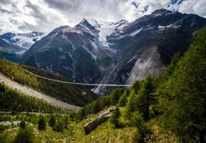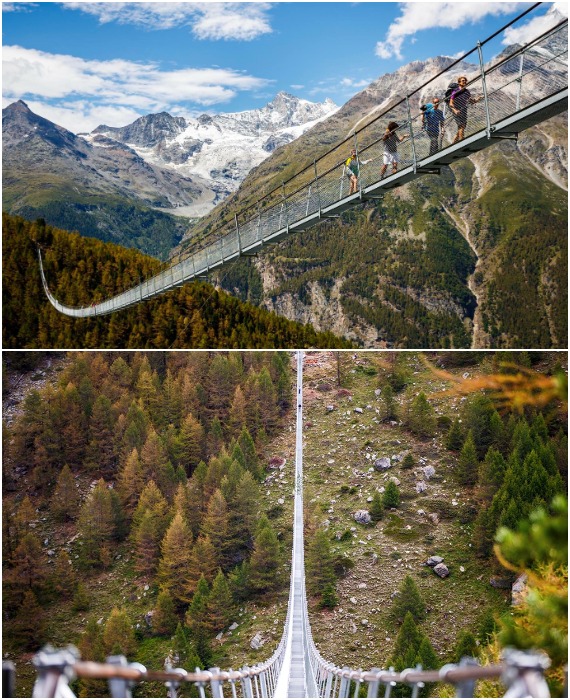 Подвесной мост Чарльза Куонена – самый длинный подвесной пешеходный мост в Альпах, ставший популярным развлечением для сильных духом туристов (Швейцария). | Фото: veronicaiovino.com.