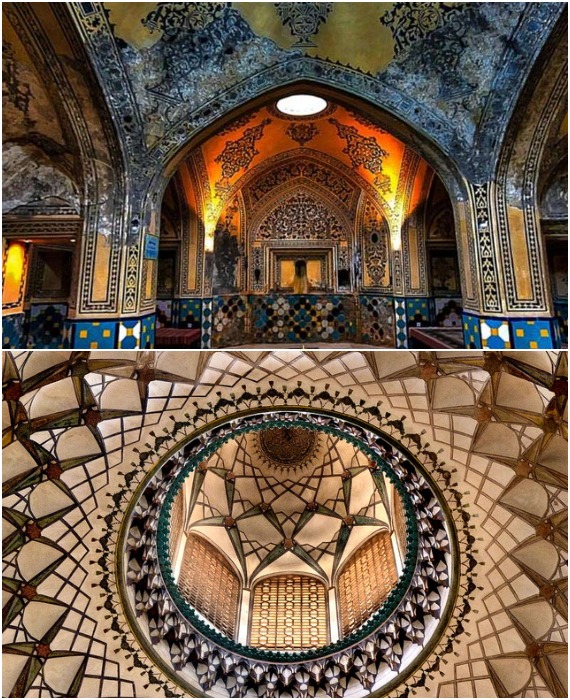 Дополнительная подсветка помогает рассмотреть даже самые мелкие детали невероятной красоты интерьера (Qasemi Bathhouse, Кашан).