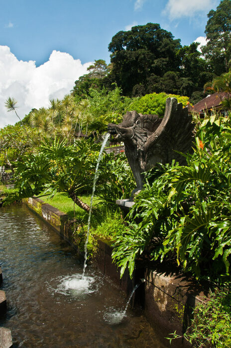 Большинство внушительных скульптур являются дополнительными фонтанами, подпитывающими пруды и бассейны водного комплекса (Tirta Gangga Water Palace, Бали). | Фото: digitaltravelcouple.com.