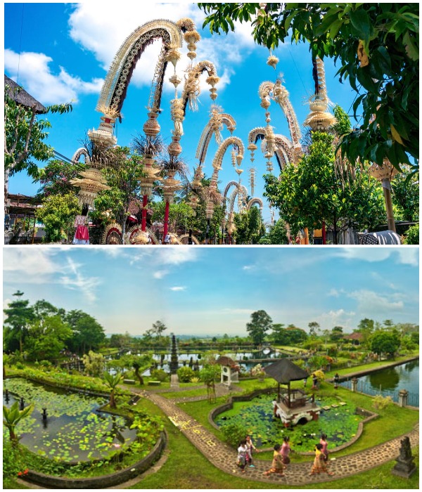 Королевский дворец Тирта Ганга, расположенный посреди рисовых полей и занимающий 3 гектара земли, является одним из красивейших комплексов на Бали. Большую часть его территории занимает обширная система прудов, бассейнов и фонтанов, вокруг которых разбит тропический парк с роскошной зеленью, также имеется и парк скульптур, ставший точкой притяжения для любителей экзотики.