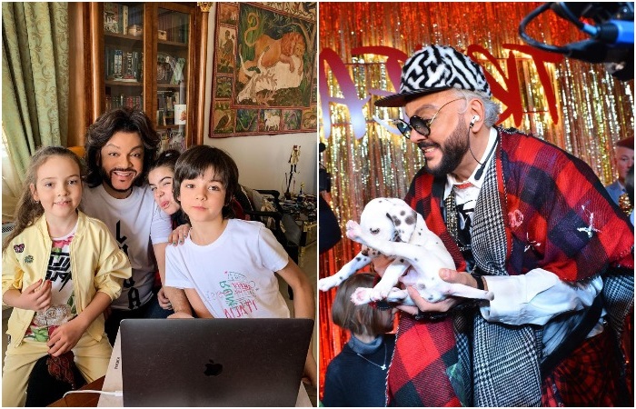 Филипп Киркоров с детьми и одним из домашних питомцев.