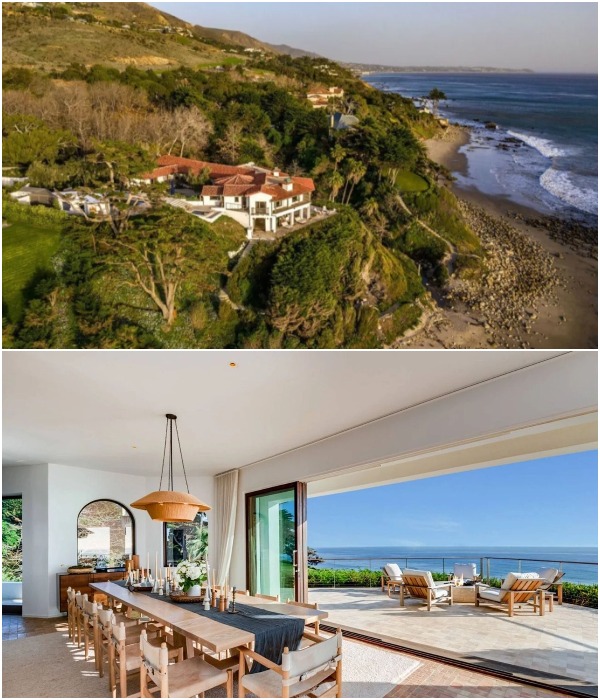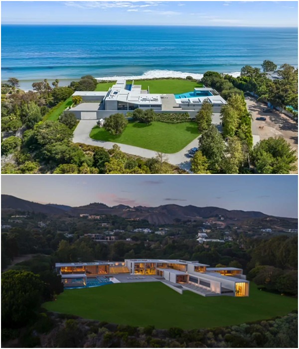 Покупка поместья в Малибу с ультрасовременным особняком от Притцкеровского лауреата стала самой дорогой сделкой Калифорнии (штат Калифорния, США). Примечательно: Видеоэкскурсий и фотоссесий знаменитая парочка еще не проводила в доме, но доподлинно известно, что особняк из полированного бетона площадью 3,7 тысячи квадратных метров расположен на довольно внушительном участке с видом на побережье (3,2 гектара). Помимо основного здания, на территории располагается «переворачивающийся» бассейн с лаундж-зоной. Автором проекта неординарного особняка является Притцкеровский лауреат, модный среди знаменитостей архитектор Тадао Андо. А вот предыдущим владельцем, для которого и строился дом, был крупнейший коллекционер произведений искусства Уильям Белл-младший.