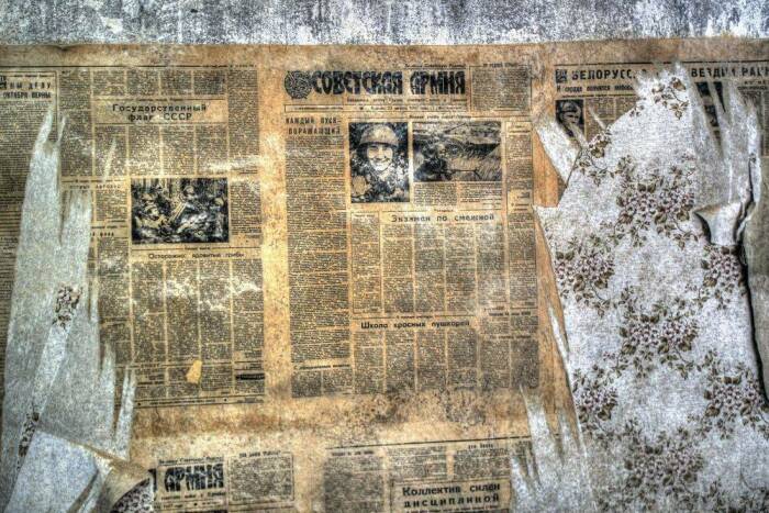 Советские газеты на стене Порой, делая капитальный ремонт в квартирах наших родителей, мы вдруг находим вживлённые прямо в стены неожиданные информационные блоки об изменениях климата или событиях на Кубе. Чёрно-белые новостные издания стали частью жизни не только фигурально, но и буквально. Газеты наклеивали под обоями: во много слоёв к ряду: в некоторых местах толще, а в некоторых тоньше. Однако далеко не во всех зданиях можно было столкнуться с таким необычным способом обустройства; он применялся, как правило, только в домах с индивидуальными особенностями.