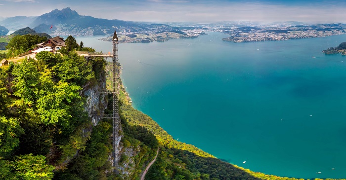 Этот живописный подъёмник находится на плато Бюргеншток, что на территории современной Швейцарии. Назначение же его вполне практическое - лифт соединяет горную тропу и смотровую площадку Хамметшванд, куда поднимаются, чтобы насладиться великолепным видом на Люцернское, также известное как Фирвальдштетское озеро и окружающие альпийские горы. История его начинается ещё с 1905 года, но это не мешает ему на протяжении практически 120 лет оставлять за собой статус самого высокого внешнего лифта на территориях Европы.