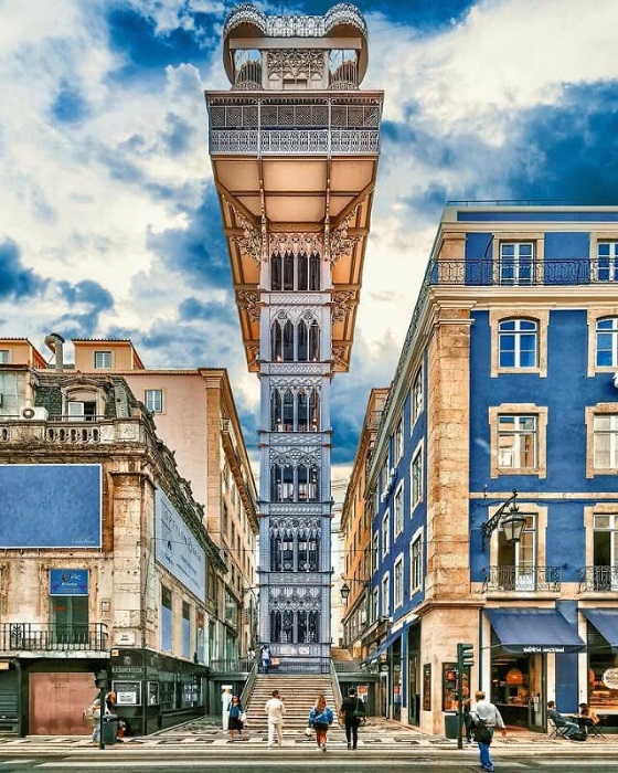 Этот внешний лифт имеет занятную историю, потому что получил звание памятник национального значения. А вель открыли его аж в 1902 году. Вот с тех пор она и продолжает оставаться одной из самых популярных туристических достопримечательностей в Лиссабоне. С помощью этого подъёмника фактически объедияется два центральных лиссабонских района, расположенных в низинне и на возвышенности - Байша и Шиаду соответственно. Внешний вид лифта действительно поражает, потому что является железной башней неоготического стиля.