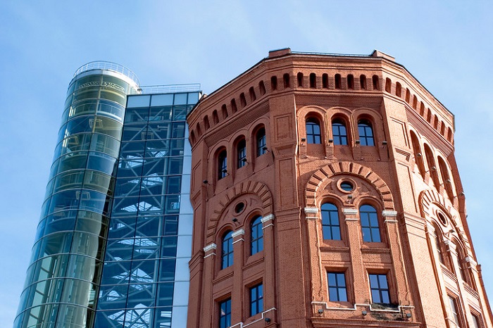На отечественных просторах красивейший внешний лифт тоже можно найти, например, в Северной столице. Так, Санкт-Петербург может похвастаться водонапорной башней на Шпалерной, возведённой ещё в девятнадцатом столетии и имеющий статус памятника истории централизованного водоснабжения. Соответственно, его как важный архитектурный объект стараются сохранить, поэтому его несколько раз реконструировали. Так вот, во время одной из них пожарная лестница водонапорной башни обзавелась новым лифтом, вынесеным в виде стеклянной пристройки. А ведь такой дизайн был выбран не случайно: таким образом архитектор обозначил курсирующий по башне поток воды.