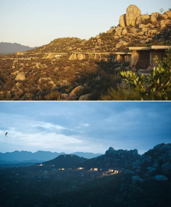 По сведениям Novate.ru, под строительство курортного комплекса выделено 140 тыс. кв. метров пустынной территории, охватывающей каменистые склоны холмов. В его состав входят помимо отдельно стоящих вилл, общественных зон отдыха и питания, развлекательных пространств, открытого бассейна и СПА-центра собственная винодельня, которая и станет главной изюминкой архитектурной композиции.