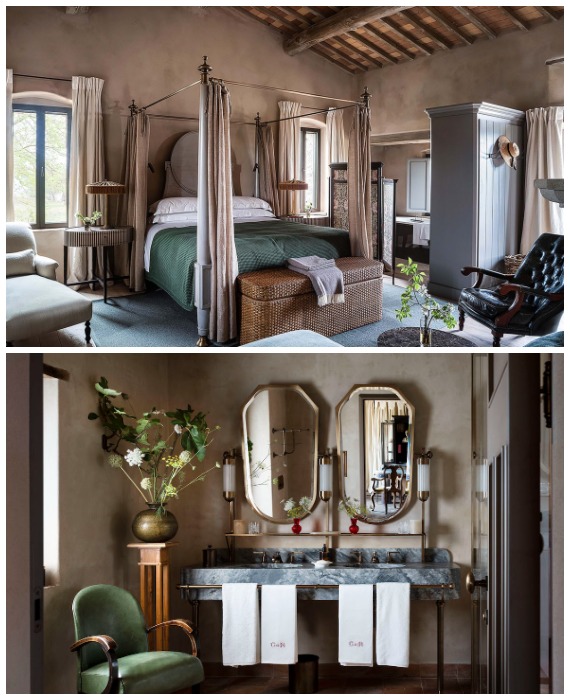 Каждый номер оформлен в уникальном стиле и посвящен одному из бывших владельцев замка (Castello Di Reschio Hotel, Италия). | Фото: townandcountrymag.com.