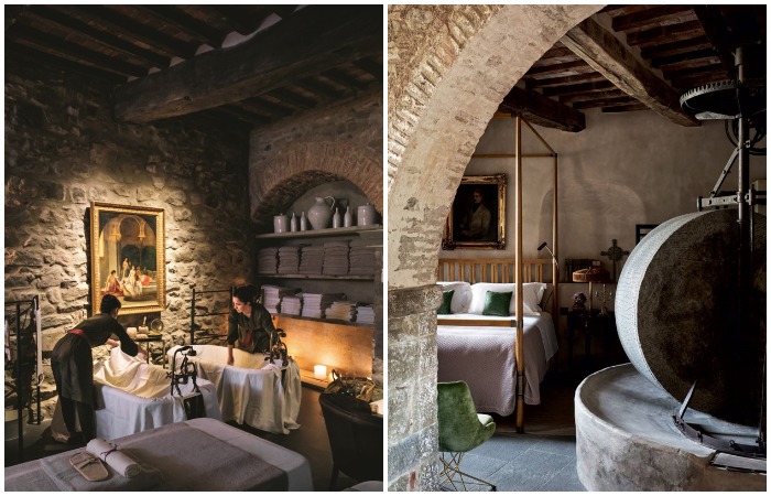 Именно здесь молодой граф Больца познакомился со своей будущей женой Ненси – представительницей знатной семьи Корсини, которая в былые времена владела поместьем (она приезжала на этюды). Молодая художница также подключилась к реставрации, ее руке принадлежат не только идеи дизайна, но и колоритные фрески trompe l'oeil на некоторых виллах, в которых максимально точно сохранили аутентичный вид и обустроили идеальное место для отдыха вдали и от других постояльцев, и от шумных городов.