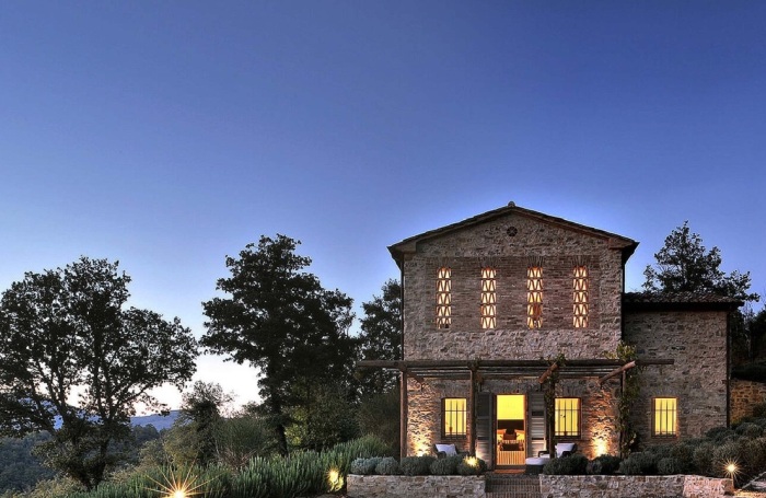 Стеклянные раздвижные двери во весь задний фасад дома позволяют освещать даже самые угрюмые каменные ниши и уголки (Castello Di Reschio Hotel, Италия). | Фото: lofficielusa.com.
