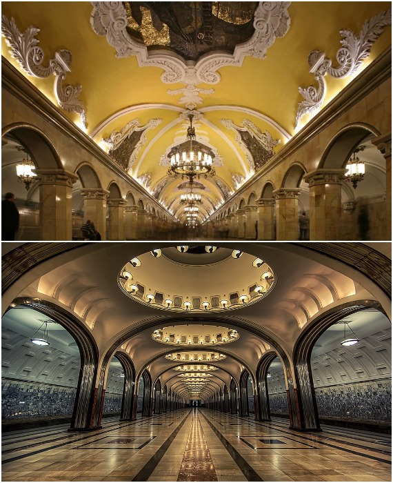 В Советском Союзе вестибюли станций метро старались превратить в роскошные дворцы (станция метро Автово, Санкт-Петербург).