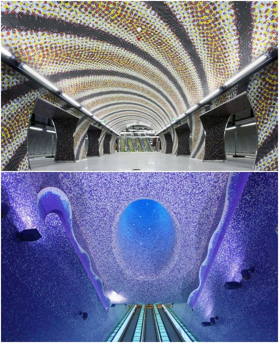 Фантастические интерьеры некоторых станций метро способны переместить в космические дали (станция Сент Геллерт тер в Будапеште и станция метро Толедо в Неаполе).