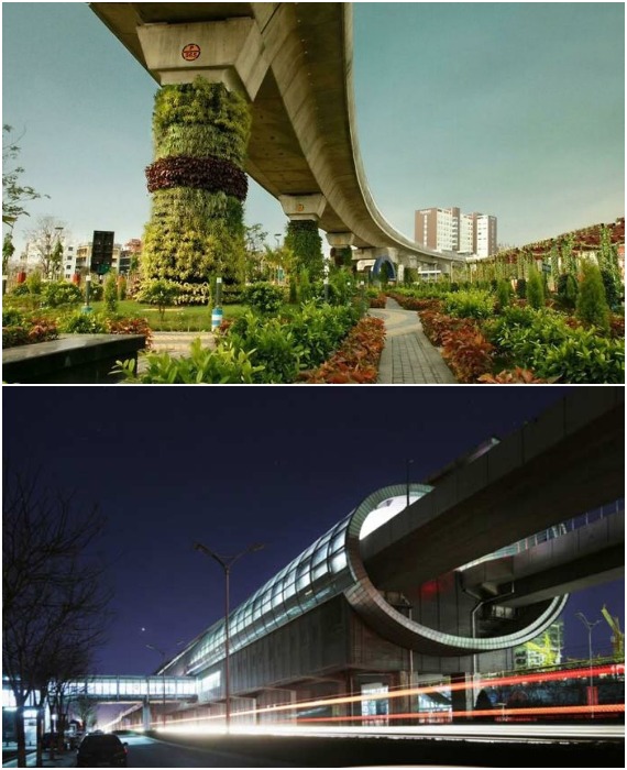 Наземная инфраструктура метрополитена поражает своими техническими и архитектурными достижениями (надземная линия метро в парке Калькутты и часть Пекинского метро).