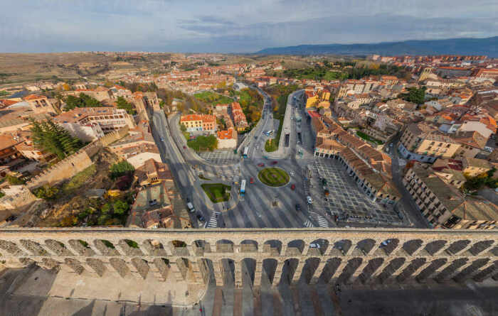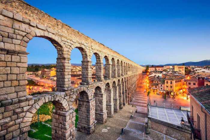 Во второй половине I века нашей эры во времена властвования на территории Кастилии Римской империи появилось уникальнейшее инженерное сооружение. Речь идет о монументальном акведуке, протянувшемся на 14 километров, издревле поставляющем воду в древний испанский город Сеговию. К сегодняшнему дню, к большому сожалению, от масштабного гидротехнического объекта осталась лишь небольшая его часть. Но даже то что имеется, дает возможность представить весь размах строительства и технологическую подкованность древних зодчих, которые создали 28-метровой высоты чудо (плюс 6 метров в глубину), подстраивающееся под контуры долины, холмов и самого города.