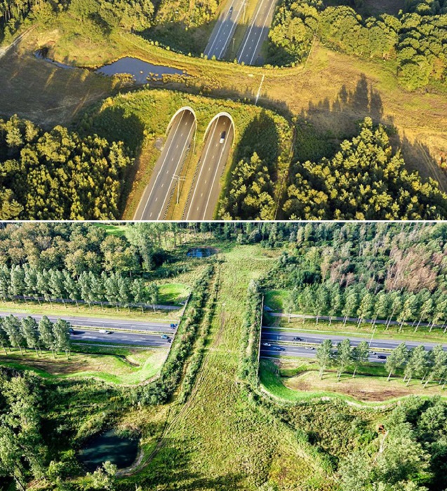 Прокладка скоростных автодорог и железнодорожных магистралей не только соединяет города и страны, облегчает и ускоряет трафик, но и нарушает устоявшуюся экосистему. Причем уничтожаются не только леса и природные ландшафты, исчезают тропы животных, которыми следуют стада на водопой или мигрируют в поисках пропитания в разное время года. Чтобы обезопасить участников движения в измененных природных зонах, в некоторых странах начали разрабатывать особый вид переправ, получивших название экодуки. Именно они позволяют передвигаться животным без риска попасть под колеса мчащихся автомобилей/поездов, да и сами автомобилисты с пассажирами оказываются в безопасности, ведь столкновение с крупными особями чревато фатальными последствиями для всех.