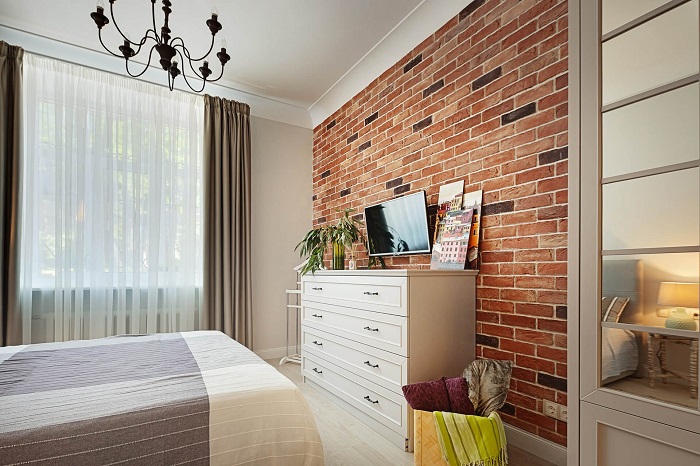Недостаток и, одновременно, преимущество такой вешалки состоит как раз в ее открытости – она дисциплинирует всегда поддерживать порядок, а не просто бросать скомканные вещи на полку, и забывать по них. Кстати, при желании рейлинг может даже стать элементом декора. Для этого нужно развесить на нем вещи, которые по цвету сочетаются с основной гаммой интерьера. Идеально, если в спальне, где стоит вешалка, есть ниша – тогда можно будет «растворить» ее в пространстве.