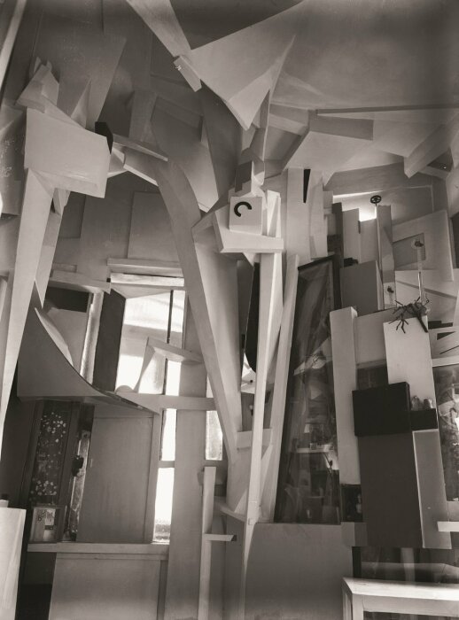 Десять лет спустя немецкий художник-дадаист Курт Швиттерс начал делать свою постоянную серию инсталляций под названием «Мерцбау» (1933 г.), используя деревянные панели, глядя на которые, создается впечатление, что они растут наружу прямо из стен. А вот французский сюрреалист и художник-дадаист Марсель Дюшан стал одним из первых, кто неожиданным образом экспериментировал с траекторией движения посетителей по пространству галереи, заполняя его сложной паутиной, вылившейся в композицию в «Миле струны» (1942 год).