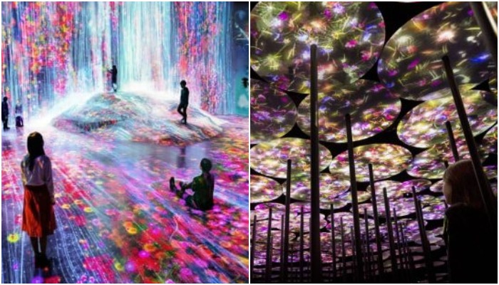 Используя лишь зеркальные панели и цветные огоньки, японская художница Яёи Кусама создала чарующий мир иммерсионного пространства под названием «Бесконечность зеркальной комнаты» или Infinity Room, который приводил в восторг посетителей галерей по всему миру. Хитрость в создании бесконечности состояла в том, что художница вначале установила зеркальные панели на всех плоскостях небольшого помещения, включая потолок и пол, а затем заполнила его крошечными сетями цветных огней или светящихся объектов. Их лучи, преломляясь создают тот самый эффект бесконечности, по которому идут посетители, рассматривая «Вселенную» и призматическое отражение самого себя.