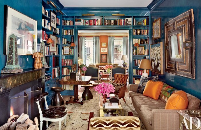 Мы все были в жилищах, которые выполняли функцию музеев… А иногда мы живём в таких! Настенная галерея дома может выглядеть элегантно, она определенно лучше работает в больших помещениях. Когда в доме низкие потолки, слишком много вещей на стенах могут сделать комнату визуально (да и физически тоже!) тесной. Чтобы этого избежать, плоский стеллаж от пола до потолка может зрительно увеличить комнату и создать дополнительное место для хранения всех ваших любимых репродукций и фотографий.