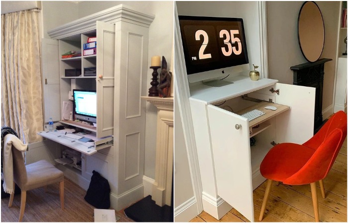 Кабинет прячется за дверцами шкафа. / Фото: blog.postel-deluxe.ru